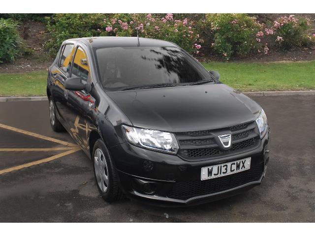 This vehicle is a 13 Dacia Sandero 0.9 Tce Ambiance 5Dr Petrol Hatchback in Black with 5 doors.