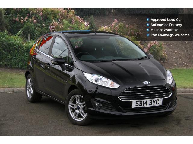 This vehicle is a 14 Ford Fiesta 1.0 Ecoboost Zetec 5Dr Petrol Hatchback in Black with 5 doors.