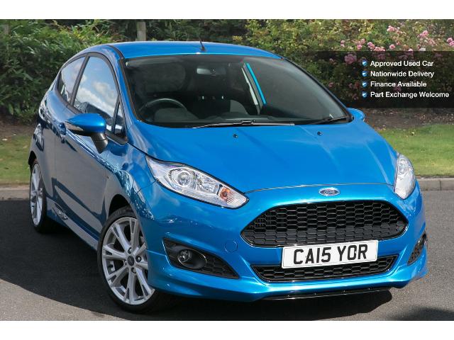 This vehicle is a 15 Ford Fiesta 1.0 Ecoboost 125 Zetec S 3Dr Petrol Hatchback in Blue with 3 doors.