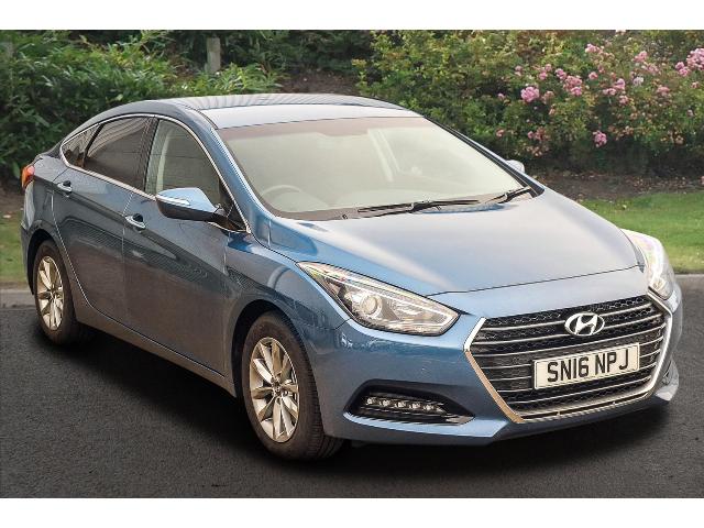 This vehicle is a 16 Hyundai i40 1.7 Crdi [115] Blue Drive Se Nav 4Dr Diesel Saloon in Blue Spirit - Pearl with 4 doors.