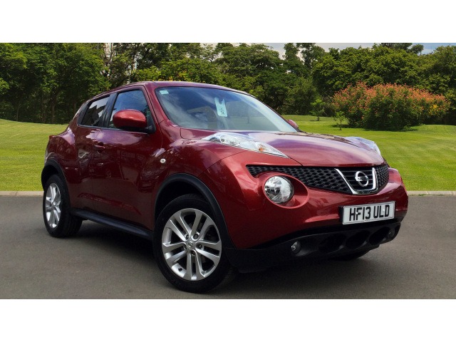 This vehicle is a 13 Nissan Juke 1.6 Acenta 5Dr Cvt [premium Pack] Petrol Hatchback in Red with 5 doors.