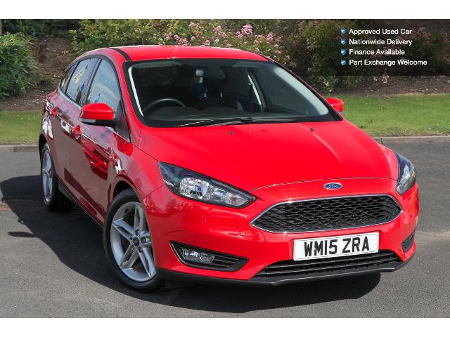 This vehicle is a 15 Ford Focus 1.6 Tdci 115 Zetec 5Dr Diesel Hatchback in Red with 5 doors.