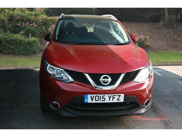 This vehicle is a 15 Nissan Qashqai 1.6 Dci N-Tec+ 5Dr Diesel Hatchback in Red with 5 doors.