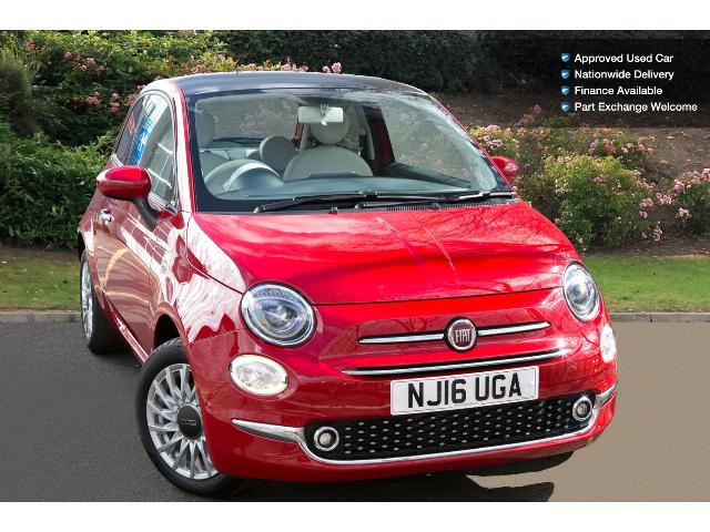 This vehicle is a 16 Fiat 500 1.2 Lounge 3Dr Petrol Hatchback in Red with 3 doors.