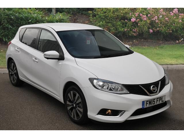This vehicle is a 15 Nissan Pulsar 1.2 Dig-T Tekna 5Dr Petrol Hatchback in White with 5 doors.