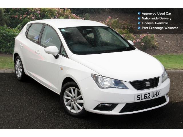 This vehicle is a 62 SEAT Ibiza 1.4 Se 5Dr Petrol Hatchback in White with 5 doors.